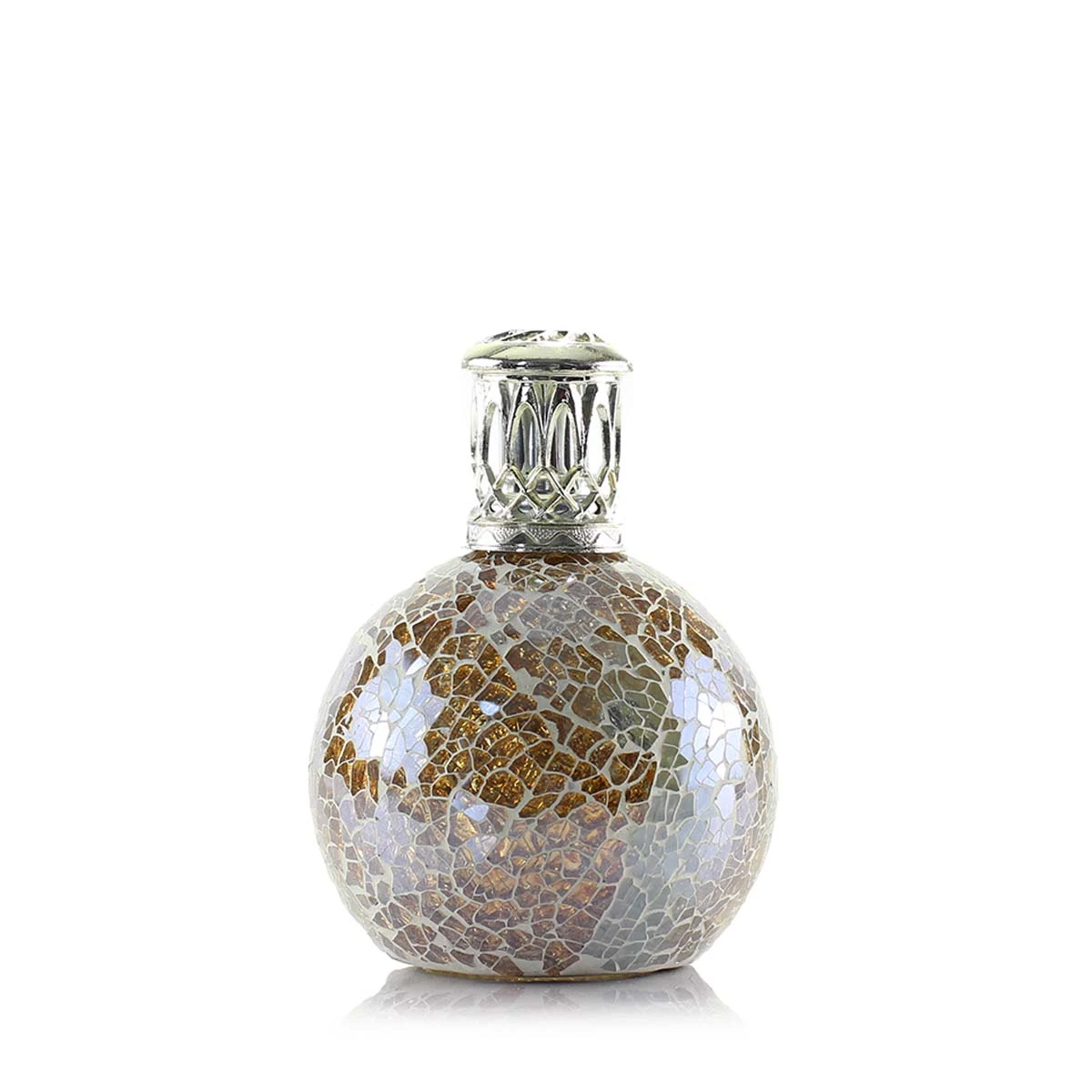 This magic lamp sparkles with a treasure trove of glittering gold, silver and bronze glass fragments in a handcrafted mosaic.