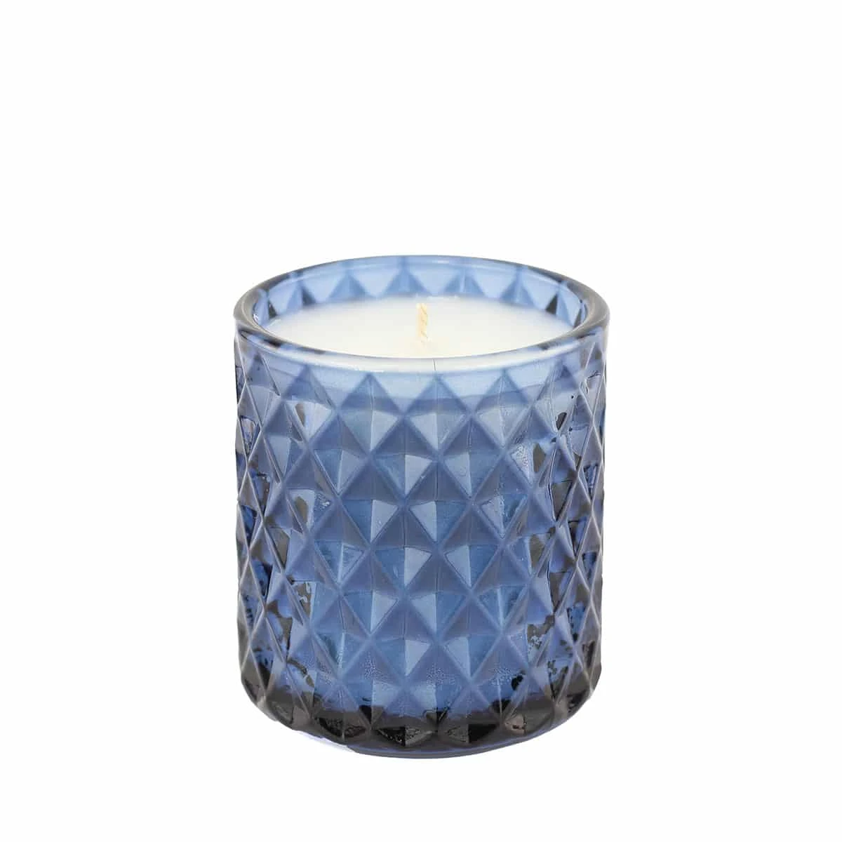 Amid smiling freshly-washed faces and lungs full with clean air from the day outside, energetic notes of citrus and lively black pepper sparkle in the air, mingling with the deep cedarwood and vetiver scent of the wood-panelled walls. Made with jewelled glass in a shade of decadent blue that adds sparkle to the natural glow of candlelight.