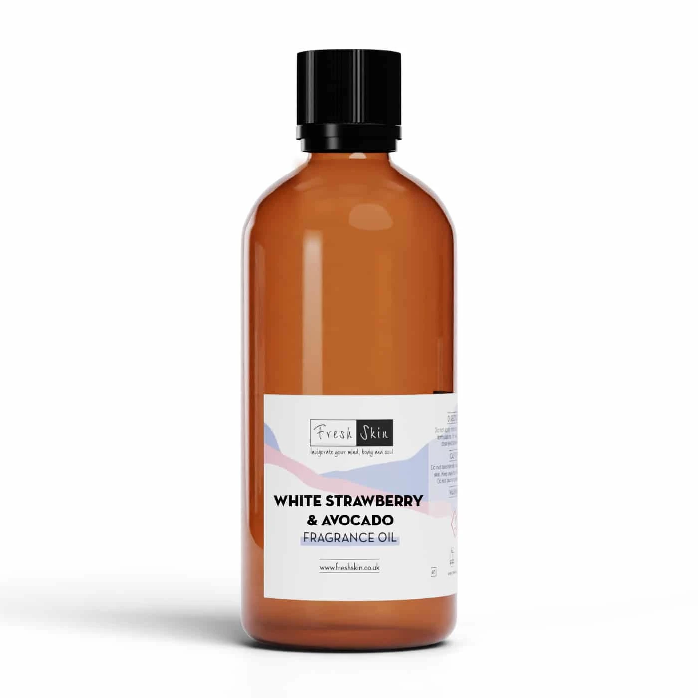 Our White Strawberry & Avocado Fragrance Oil is the perfect blend of sweet and floral scents. With top notes of white strawberries, lemon, apple, and rhubarb, this fragrance will work its magic on your senses. Together they create a scent reminiscent of summer days. The heart of jasmin and iris adds a soft sweetness before settling down to a woody base note for balance.